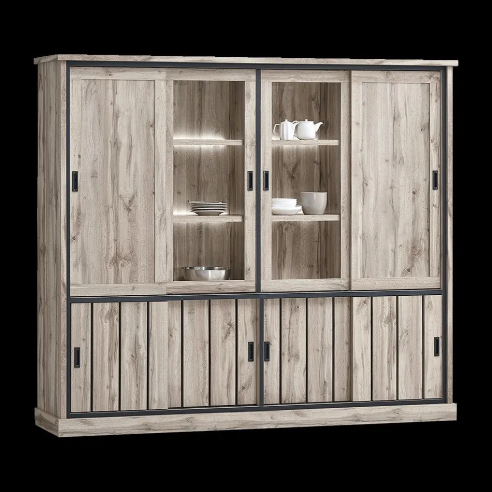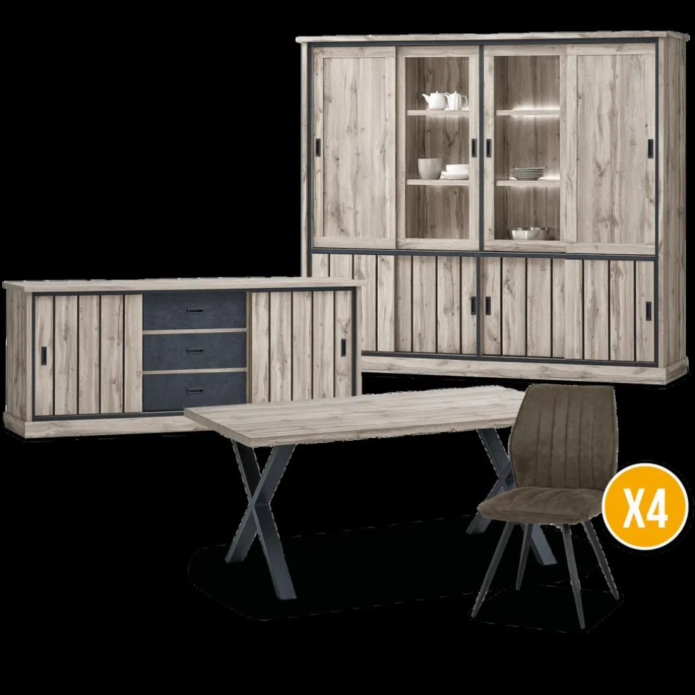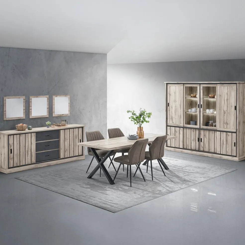 Eetkamer VIENNA: Dressoir + Glaskast B238 + Tafel 190×95 + 4x Stoel DIEGO Bruin