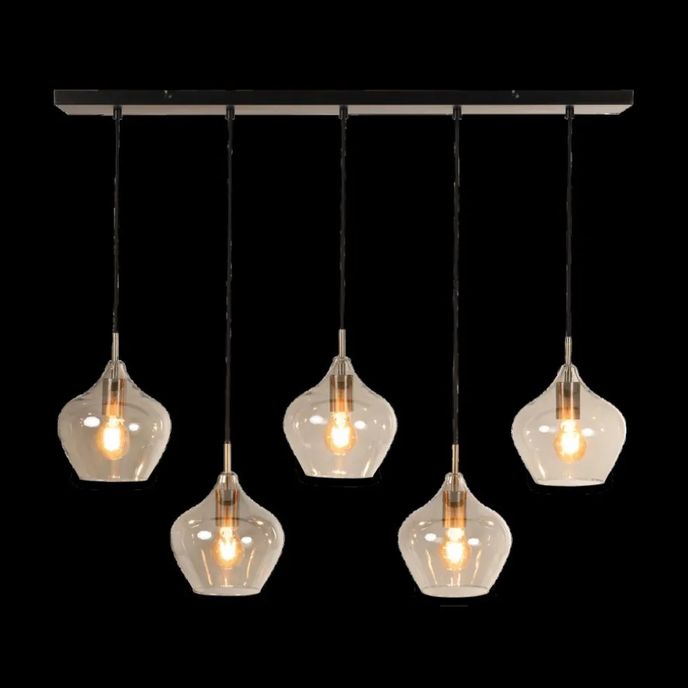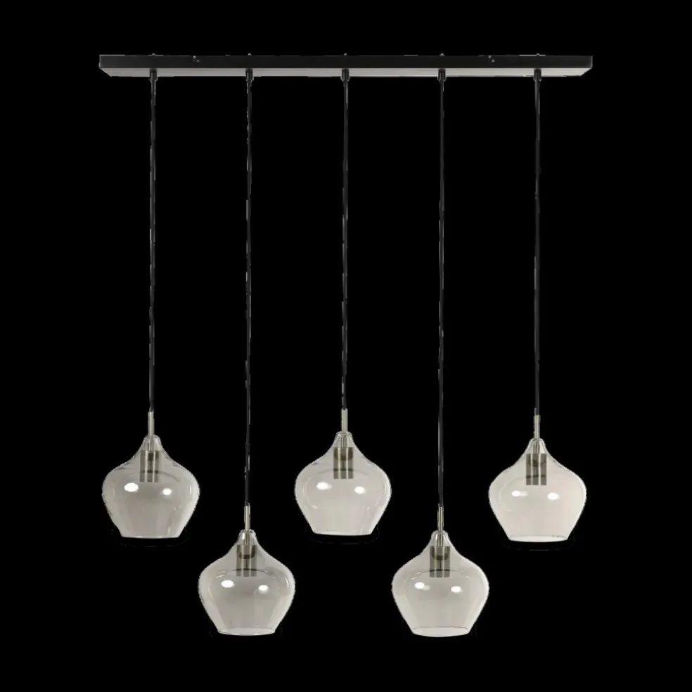 Hanglamp RAKEL 5Del. Ant. Brons/Glas Smoke