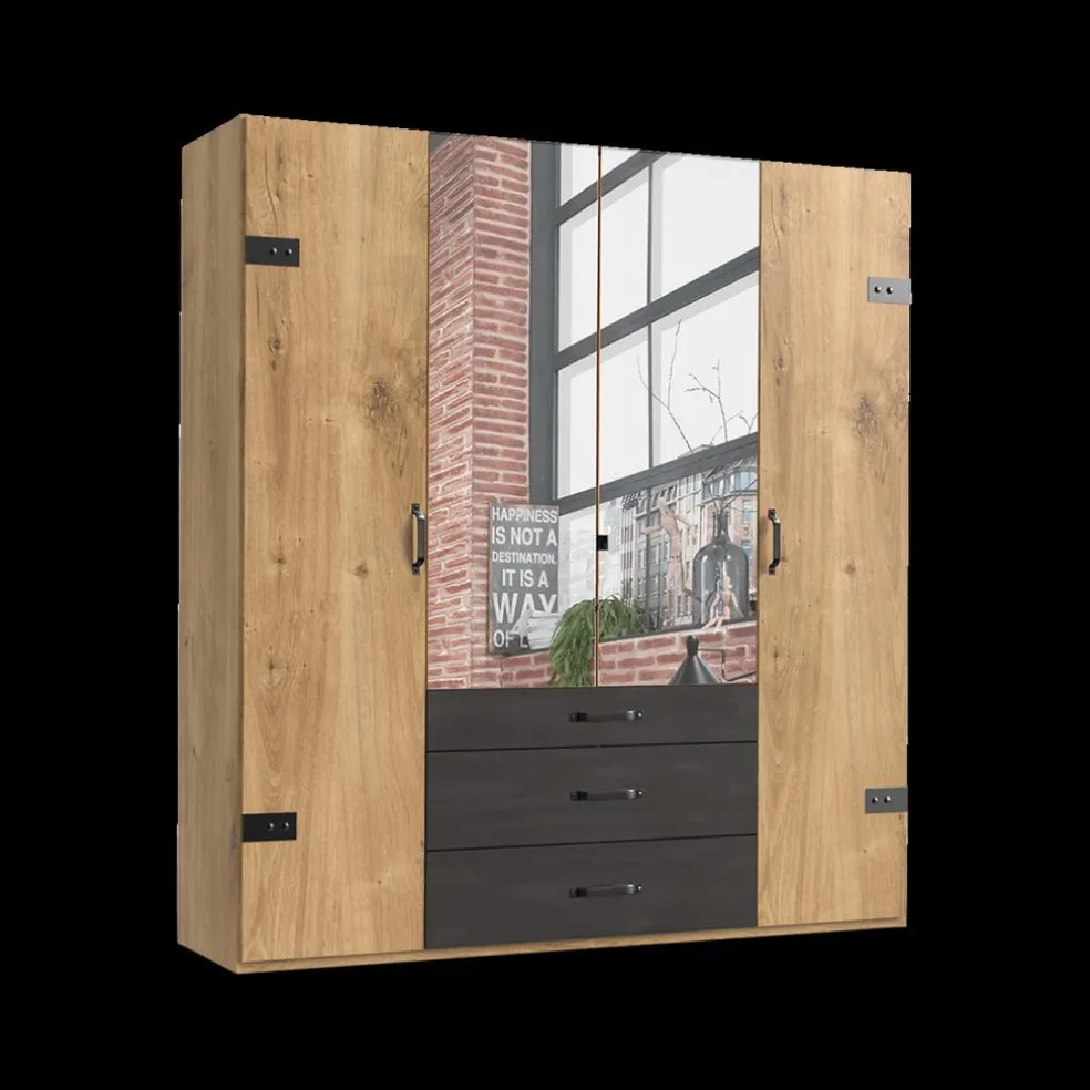Kleerkast KICK Plankeneiche/Raw Steel B200