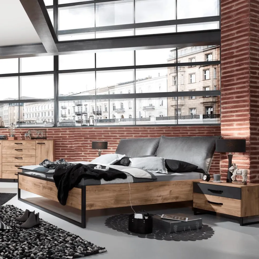 Nachttafelset KICK F99-Plankeneiche/Raw Steel