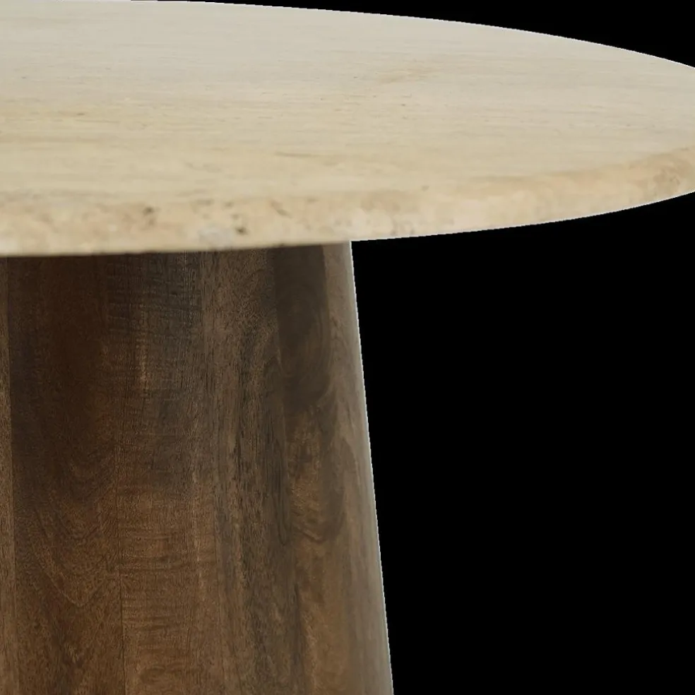 Salontafel ANANTA Ø80 Travertin/Mango Donkerbruin
