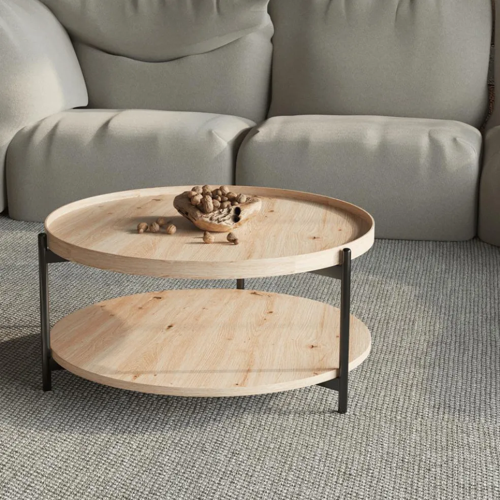 Salontafel JACOB Ø80 M/Onderblad Oude Eik