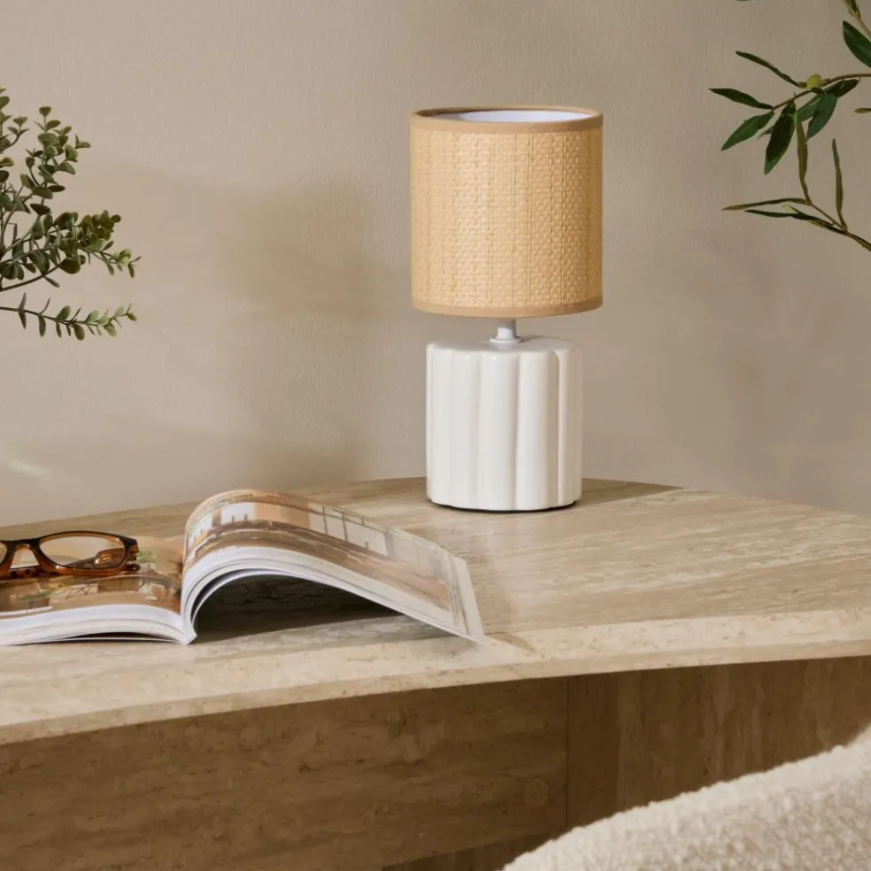 Tafellamp THYLIA Keramiek Wit m/Kap Beige