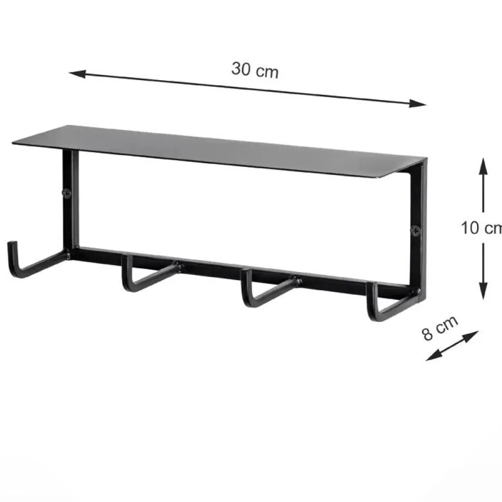 Wandkapstok TRENTON Zwart, B30-H10-D8
