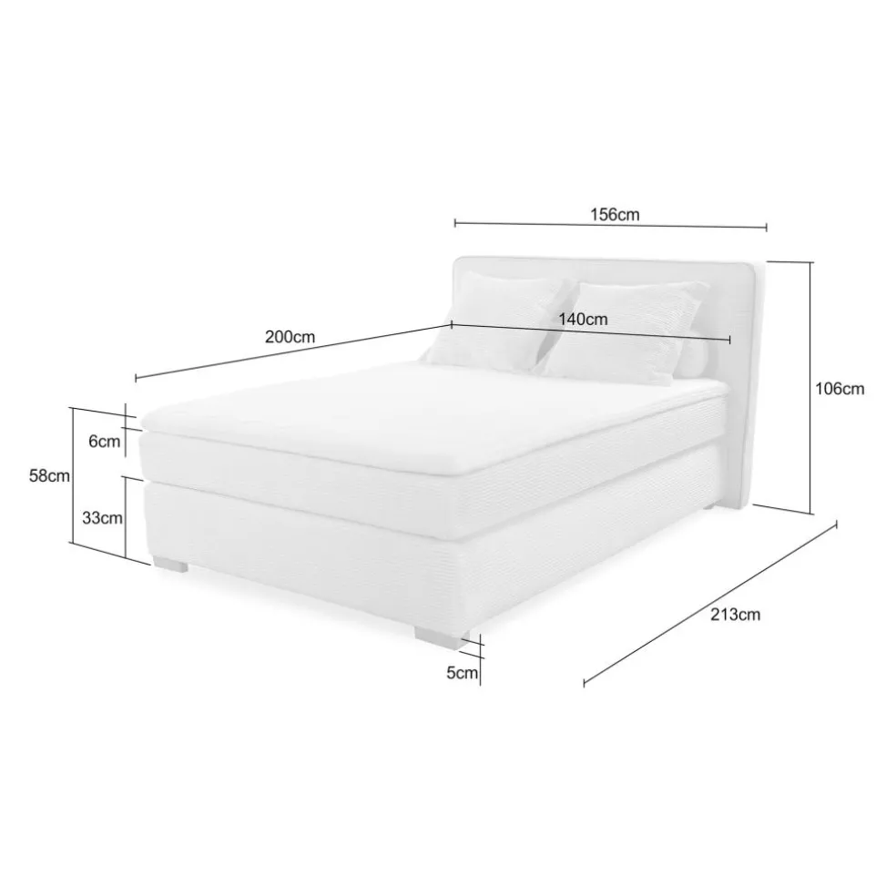 Boxspring TILBURG Ribfluweel 426/07 Beige 140×200