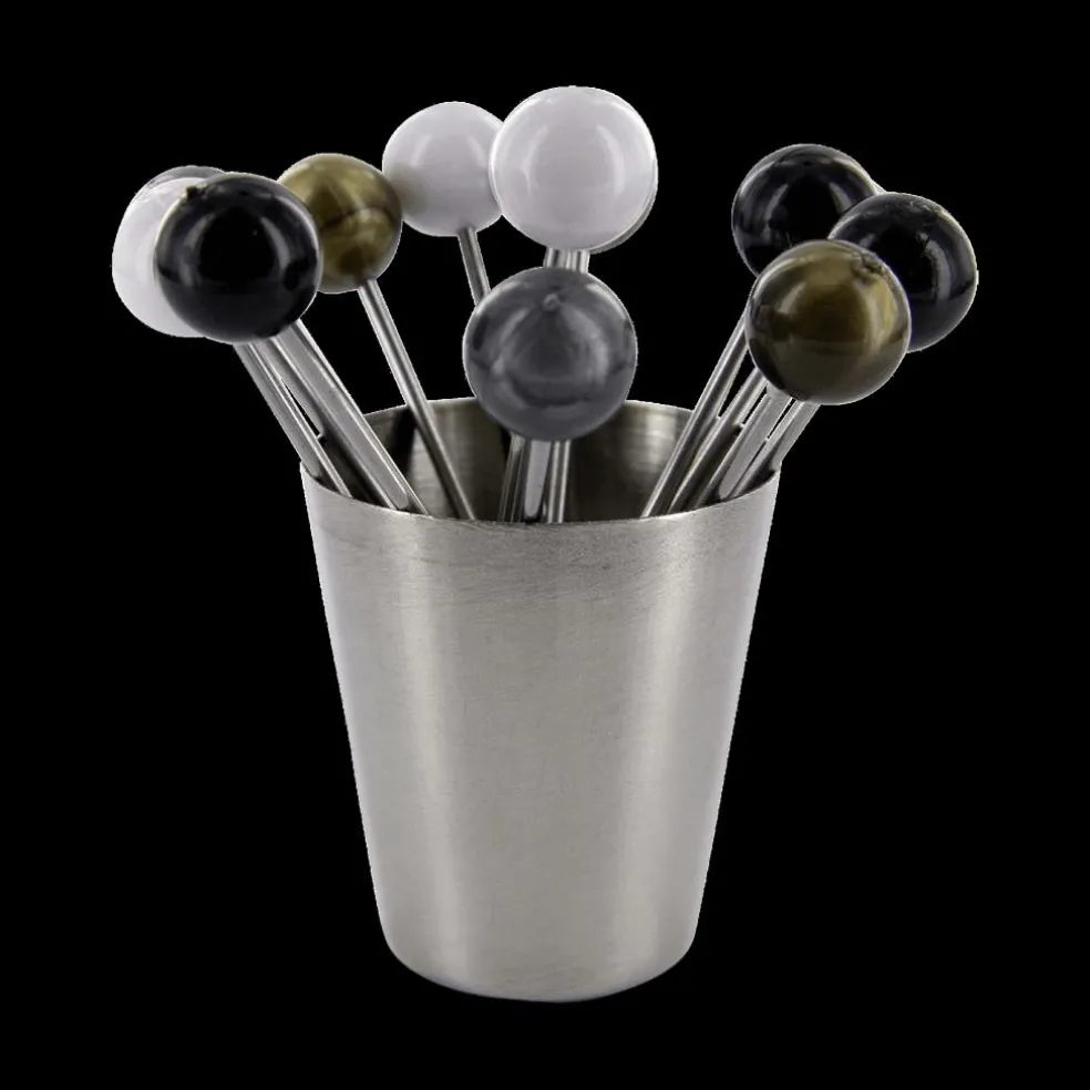 S/12 Cocktailprikkers APRO RVS M/Potje