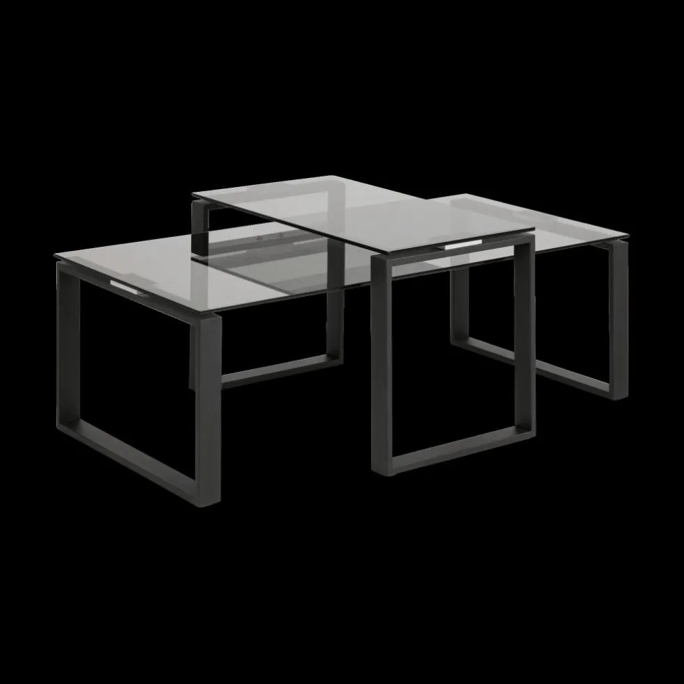 Salontafel Set van 2 MARCO Glas Smoke/Metal Black